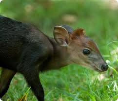 Детеныш дукера тычется носом в мать, чтобы покормиться ее молоком. Дукеры отличаются от других копытных тем, что их рацион дополняют мелкие животные и падаль.