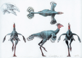В Баварии (Германия) немецкие и американские учёные палеонтологи раскопали скелет пернатого большого динозавра предположительно с пушистым большим «беличьим» хвостом, напечатали статью в журнале Proceedings of the National Academy of Sciences, объявив о его существовании миру. Учеными палеонтологами во второй половине 20 века и в начале 21 века было обнаружено достаточно много разных скелетов протоптиц, динозавров пернатых и разных птиц. Большую часть найденных останков, можно отнести к виду целурозавров — одному из более многочисленного семейства двуногих динозавров, включающие в себя тираннозавров, других хищных ящеров и птиц.