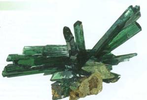 Вивианит, или синяя железная руда, может на свету изменять свой цвет и цвет черты от белого до темно-зеленого или синего. При совершенной спайности вивианит легко раскалывается на гибкие пластинки, а при нагревании краснеет и плавится, превращаясь в магнитный шарик. Свойства. Темно-синий и зеленый цвета; стеклянный и перламутровый блеск; моноклинная кристаллическая система; твердость 2; полупрозрачный; призматический или таблитчатый облик.