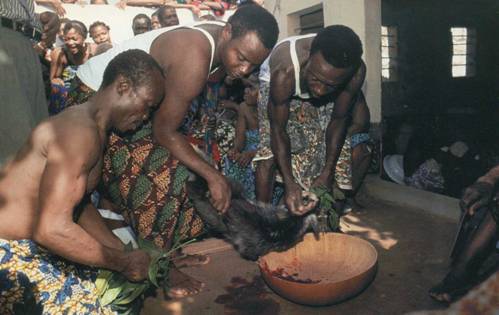 Жертвоприношение в вуду — залог обильного урожая. Один из жрецов войдёт в транс, другой заколет жертвенное животное, чтобы насытить бога земледелия и плодородия, снискать его расположение. Затем участники ритуала зажарят жертву и съедят её.