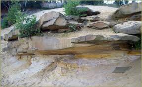 Песчаник сложен зернами минералов (главным образом кварца), сцементированными вместе кварцем, окислами железа или карбонатом кальция. Песчаники обычно белые, серые, коричневые или красные. Примесь окислов железа придает темноокрашенным песчаникам красный цвет. Большинство песчаников легко крошится и разламывается на куски, формируя песок. Смотри таблицу 7.2 для различных типов песчаника.
