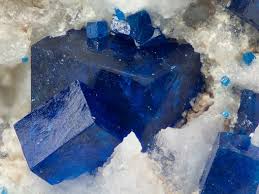 Флюорит (плавиковый шпат) образуется в гидротермальных жилах и залежах осадочных пород. Для него характерны флуоресценция и октаэдрическая совершенная спайность, прозрачность и красивый цвет, поэтому он используется камнерезами еще со времен Древней Греции. Свойства. Все цвета; цвет черты — белый; стеклянный блеск, кубическая кристаллическая система; твердость 4; прозрачный; кубический облик; светится синеватым цветом.