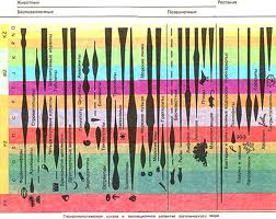 Когда геологи собирают данные для того, чтобы понять общую геологическую картину в каком-то районе, они рассматривают известные маркирующие слои, напластования и формации в хронологическом порядке и привлекают информацию об электрических свойствах пород, радиометрических данных и окаменелостях. Этот стратиграфический анализ помогает им рассчитать шкалу геологического времени или геохронологическую шкалу. Эта временная шкала разделяется на четыре основных зона, которые были выделены на основе информации о живых организмах, обитавших в это время.