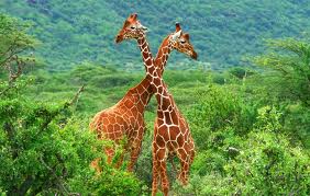 Жирафы — одни из самых запоминающихся животных на планете. Эти общественные млекопитающие кочуют по лесистой местности и саванне Африки мелкими стадами. Рост самцов превышает 5 метров, и большая часть приходится на длинную шею. Демонстрируя свою силу самкам, самцы обвивают своей шеей шею соперника. На голове у жирафов небольшие, покрытые кожей рожки, достаточно жесткие, чтобы нанести повреждения при столкновении головами во время схватки. Победитель этих состязаний в силе получает право спариваться со всеми самками в стаде.